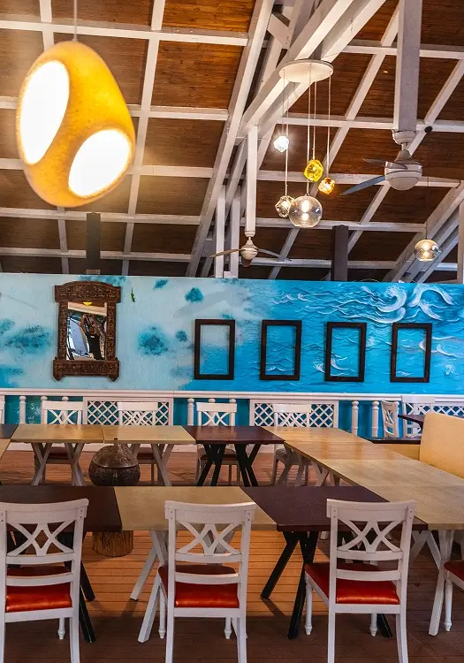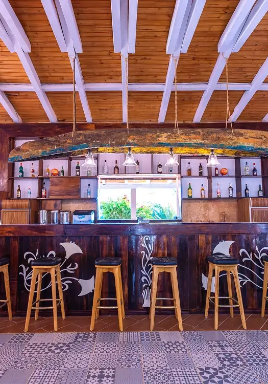 Mantasaly features two restaurants and two bars, each with its own terrace and hi-fi sound system. One is fully open toward the ocean, offering direct sea views and an integrated bar. The other is located by the pool, with a generous terrace and a relaxed tropical atmosphere.